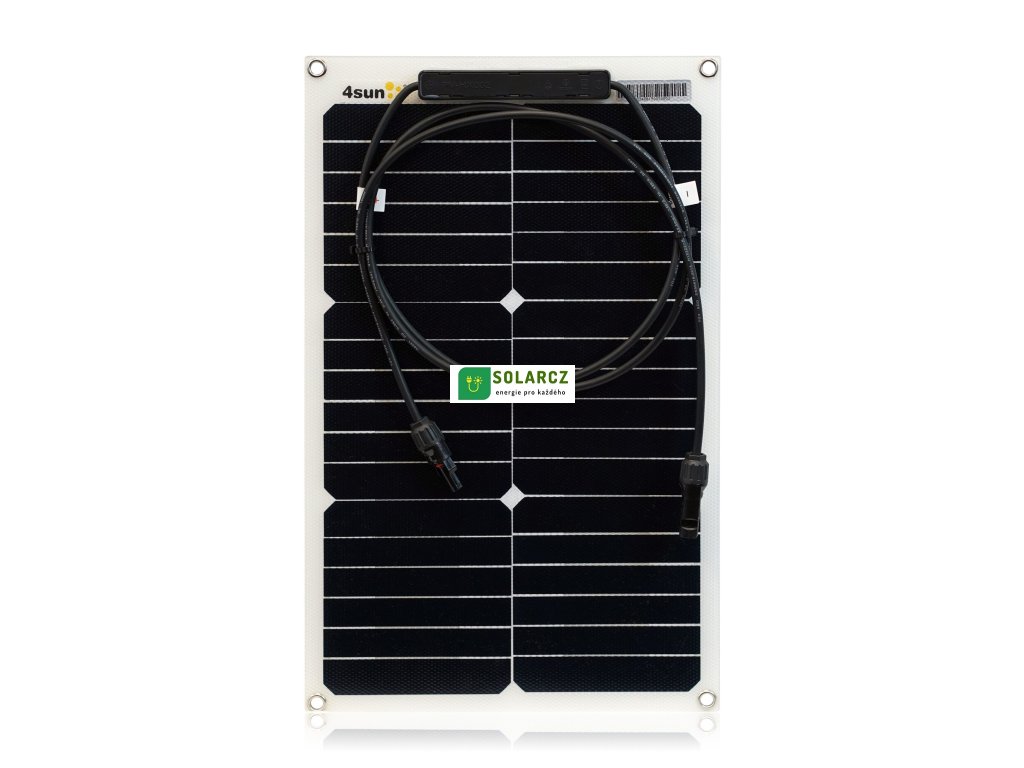 - Monokrystalický flexibilní solární panel 4SUN-FLEX-20W je určen k nabíjení 12V baterií. Panel lze použít v karavanech, obytných vozech, lodích nebo domácích solárních systémech